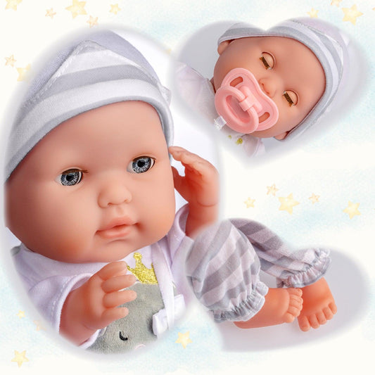 Muñeco con traje de lunares, gorro y manta