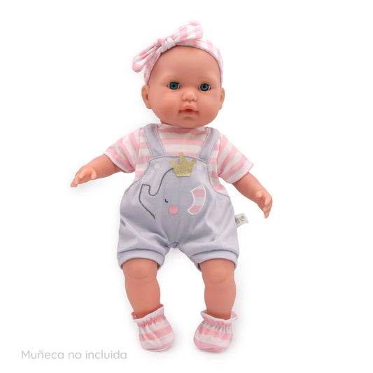Muñeca abre y cierra los ojos con conjunto elefante gris y accesorios