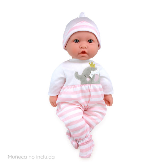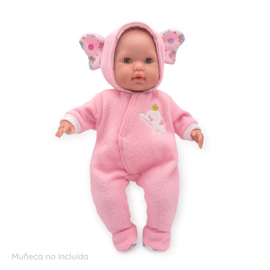 Muñeca abre y cierra los ojos con conjunto elefante y accesorios